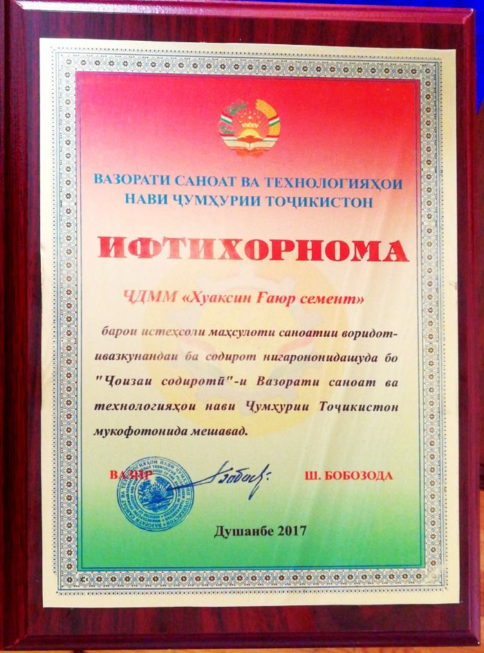 華新亞灣公司榮獲塔吉克斯坦國(guó)兩項(xiàng)殊榮
